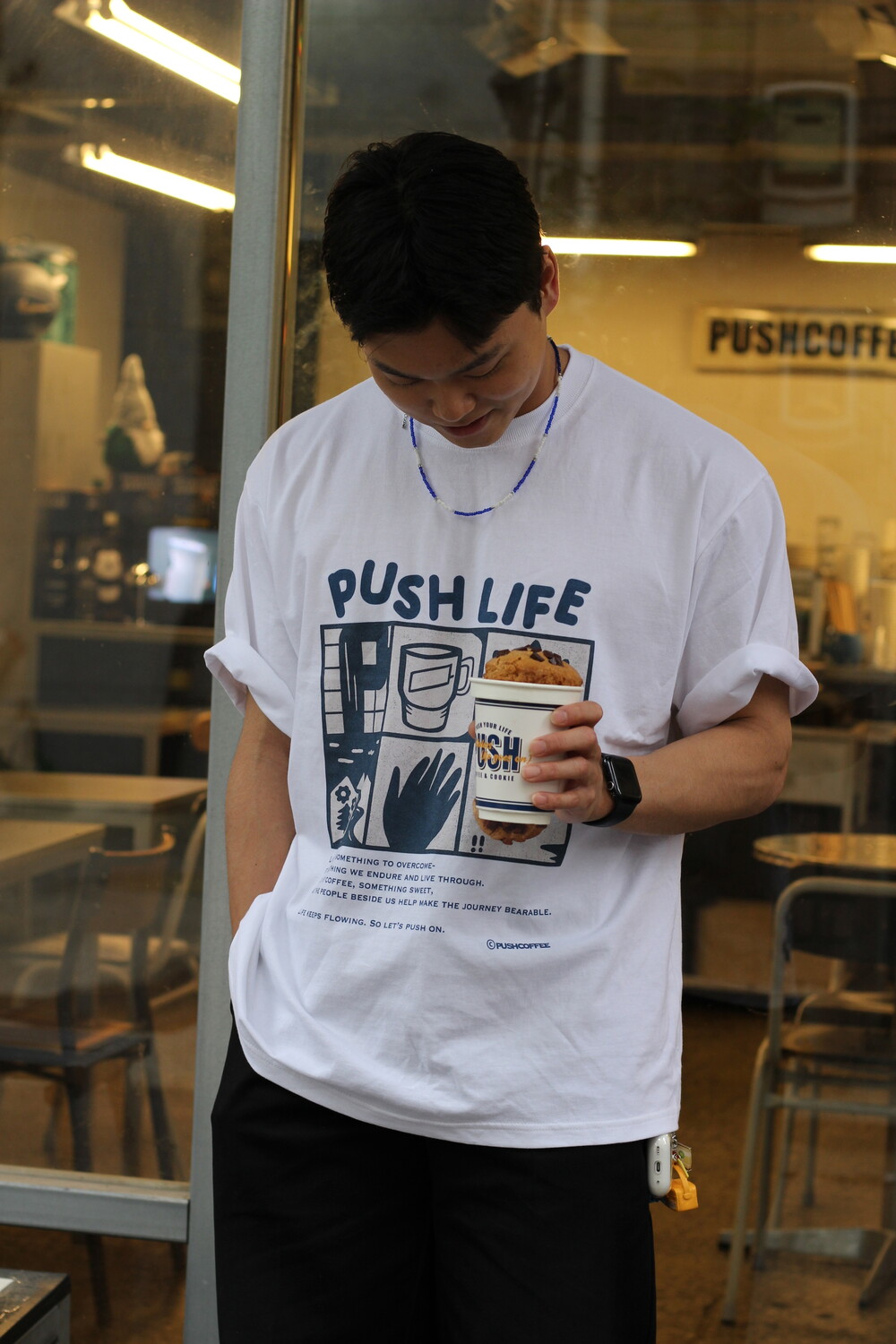 이번에 준비한 '푸쉬라이프 티셔츠'는 푸쉬커피의 시그니처들과