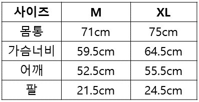 자세한 치수는 아래 사이즈표를 확인해주세요.